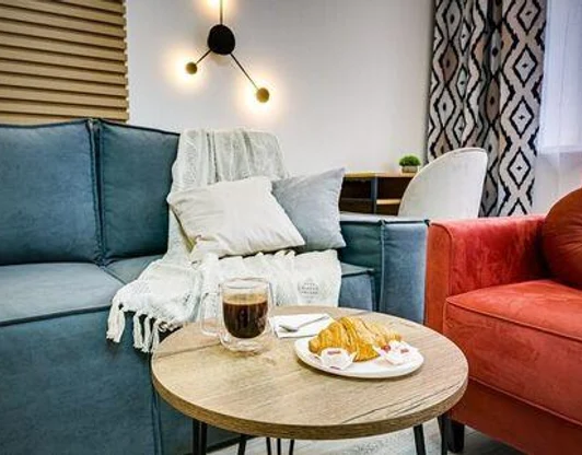 У нас всё продумано до мелочей: современные интерьеры, где каждая деталь работает на уют; удобные кровати и мягкий текстиль для глубокого сна; полностью оборудованная кухня, чтобы вы чувствовали себя как дома; Wi-Fi и рабочая зона — если нужен продуктивный день; тёплая атмосфера и спокойствие — если нужен полноценный отдых.